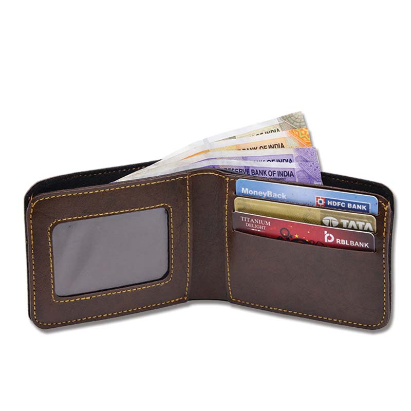 • Men’s wallet has 2 compartments for currency notes. It has slots for 3 cards and also has a slot for ID card and a hidden slot.
