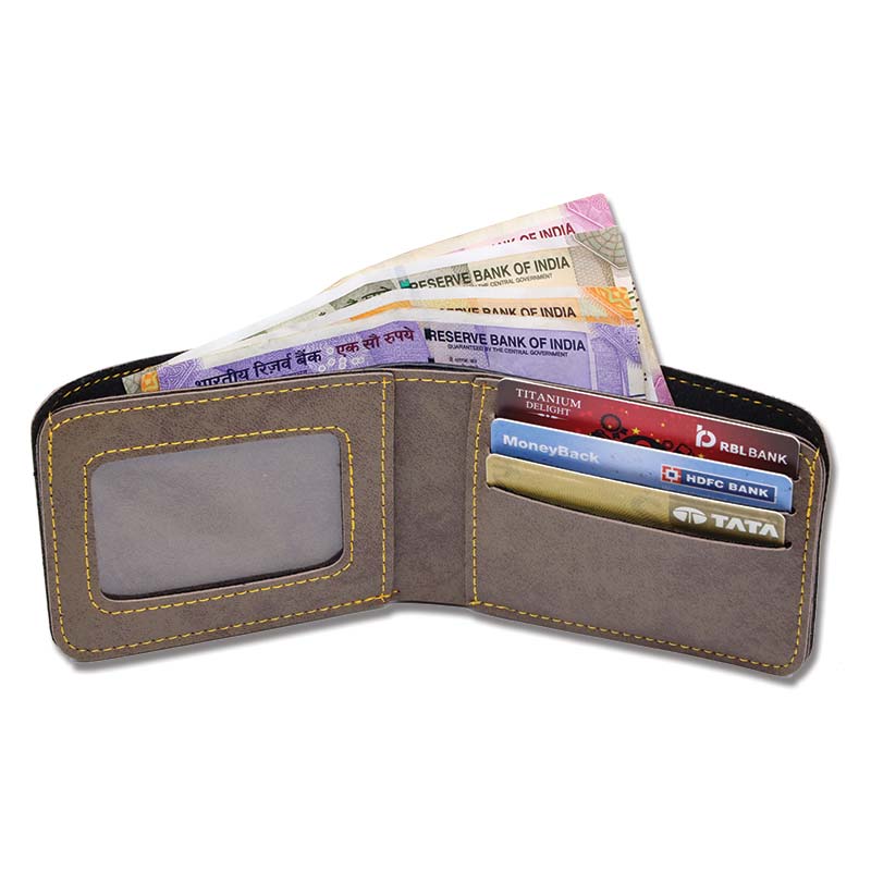 • Men’s wallet has 2 compartments for currency notes. It has slots for 3 cards and also has a slot for ID card and a hidden slot.